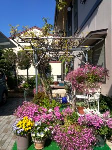 ー我が家の庭にも春の訪れー 2025年4月16日 白い大粒の藤の花が咲き始めています。
