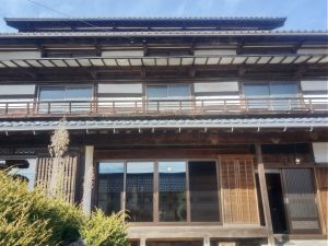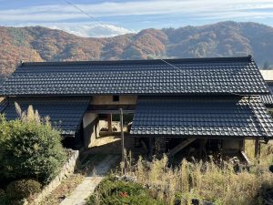 築98年。元 庄屋様のご自宅で、立派なご門・お蔵・池・庭とスケールの大きさに5人の旅人は驚愕。